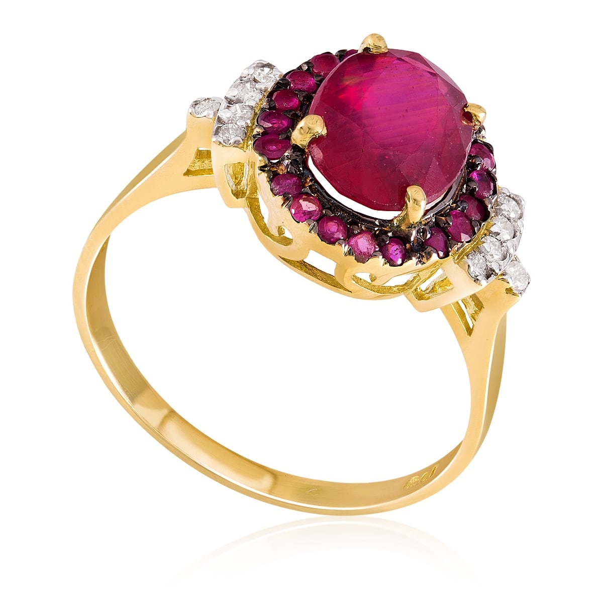 Anel de Ouro com Diamantes e 2,50 Cts em Rubis