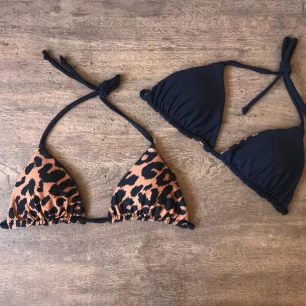 °Top Biquíni Cortininha Dupla Face Onça Mostarda com Preto com bojos fixos e flexíveis, que não absorvem água. Biquíni dupla face, super versátil, que pode ser usado do lado de onça, ou do lado preto liso, permitindo várias combinações. As alcinhas podem ser amarradas no pescoço ou nas costas.
