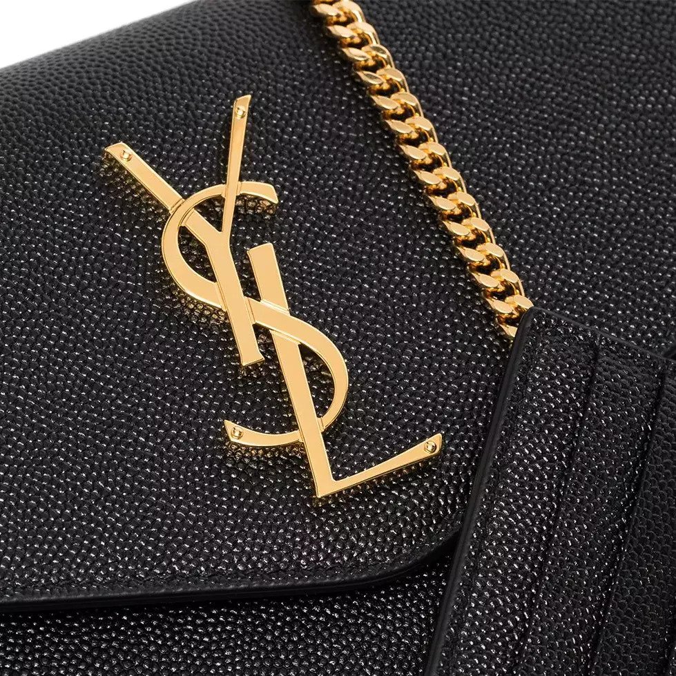 Bolsa transversal monogramada preto de couro, Saint Laurent. Com alça de ombro removível, parte superior dobrável com fecho magnético e acabamentos em dourado.
