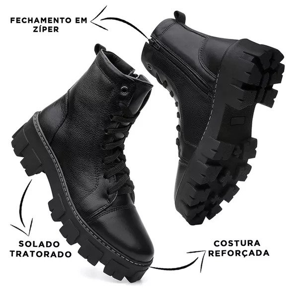 O design tratorado confere um aspecto moderno e robusto ao calçado, além de proporcionar aderência e estabilidade em diversas superfícies. Com essa bota, você estará sempre preparada para encarar seus compromissos com estilo.