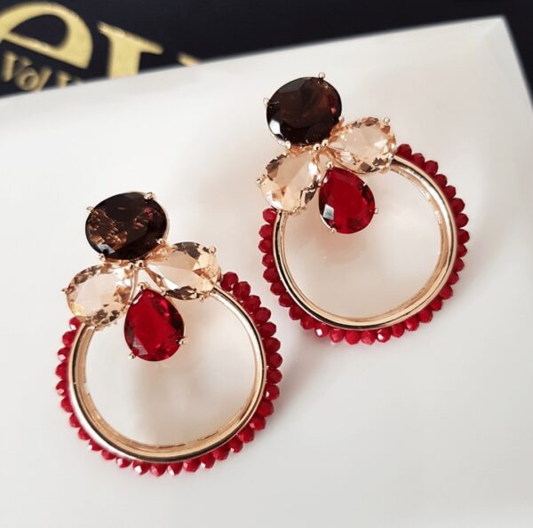 Brinco argola luxo com bordado de cristais VERMELHO E AZUL