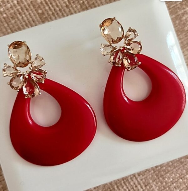 Brinco semijoias com resina e cristais . Peça elegante e exuberante. Design moderno e de exclusividade Metal Elo.