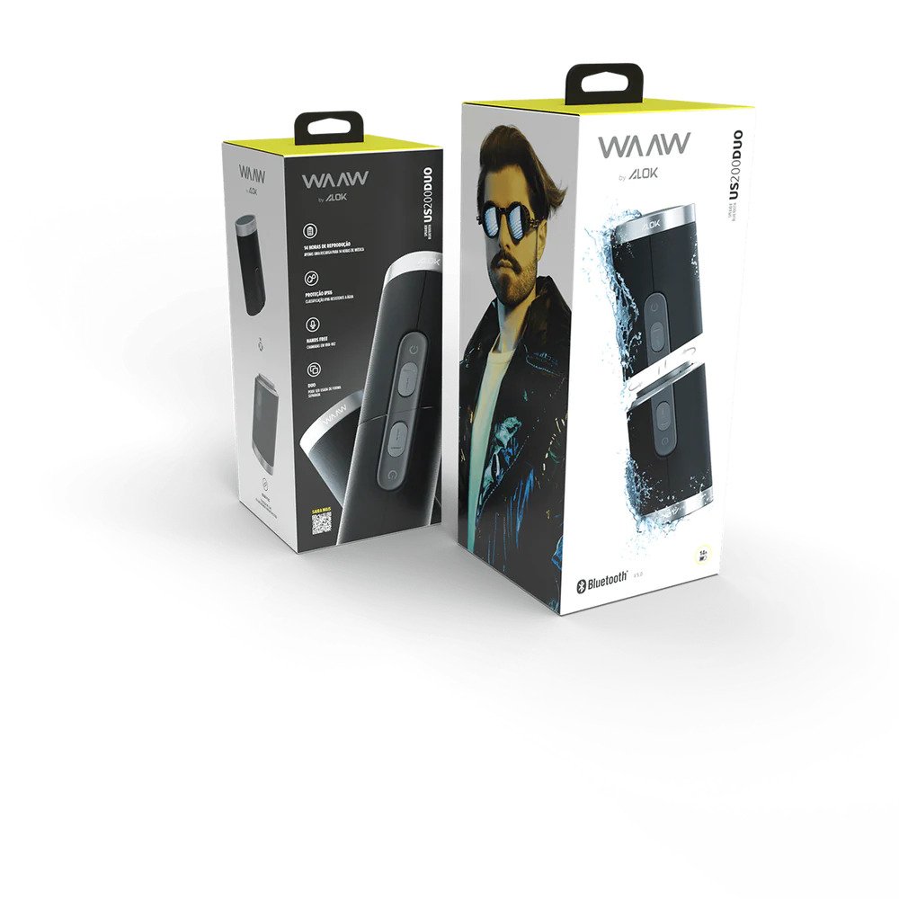 Entre em sintonia sem sair do seu ritmo. A caixa de som US 200 DUO pode reproduzir som separadas ou como uma única caixa de som, ideal para mergulhar nas suas playlists com a sensação do som 360° e ter seu #momentoWAAW.