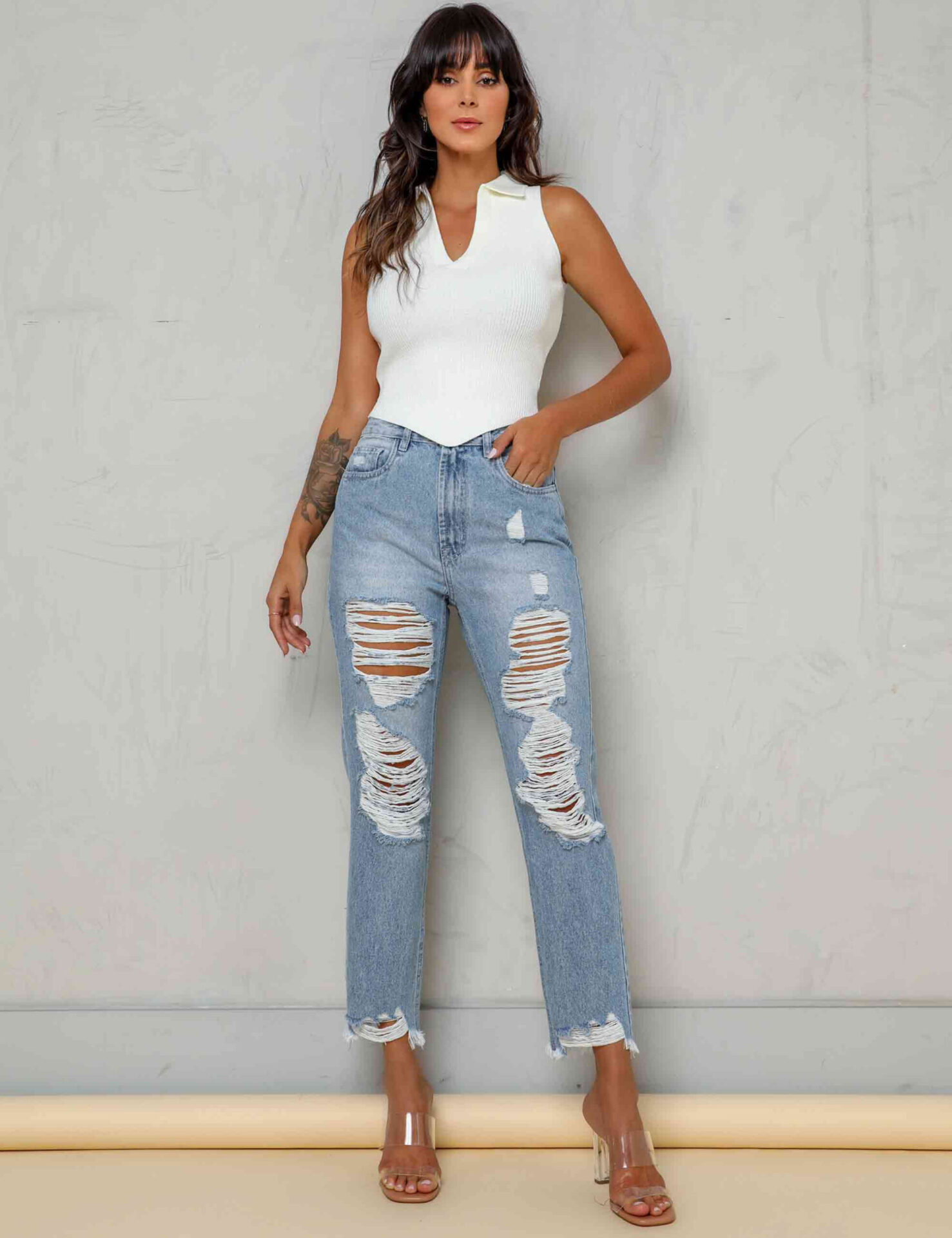 As famosas calças jeans destroyed conquistaram os guarda roupas femininos, venha se apaixonar também!