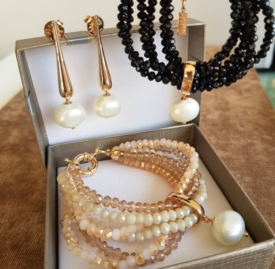 Conjunto de pulseira 6 voltas com pingente e brinco alongado. Elegante, marcante, atemporal, com design moderno e exclusivo