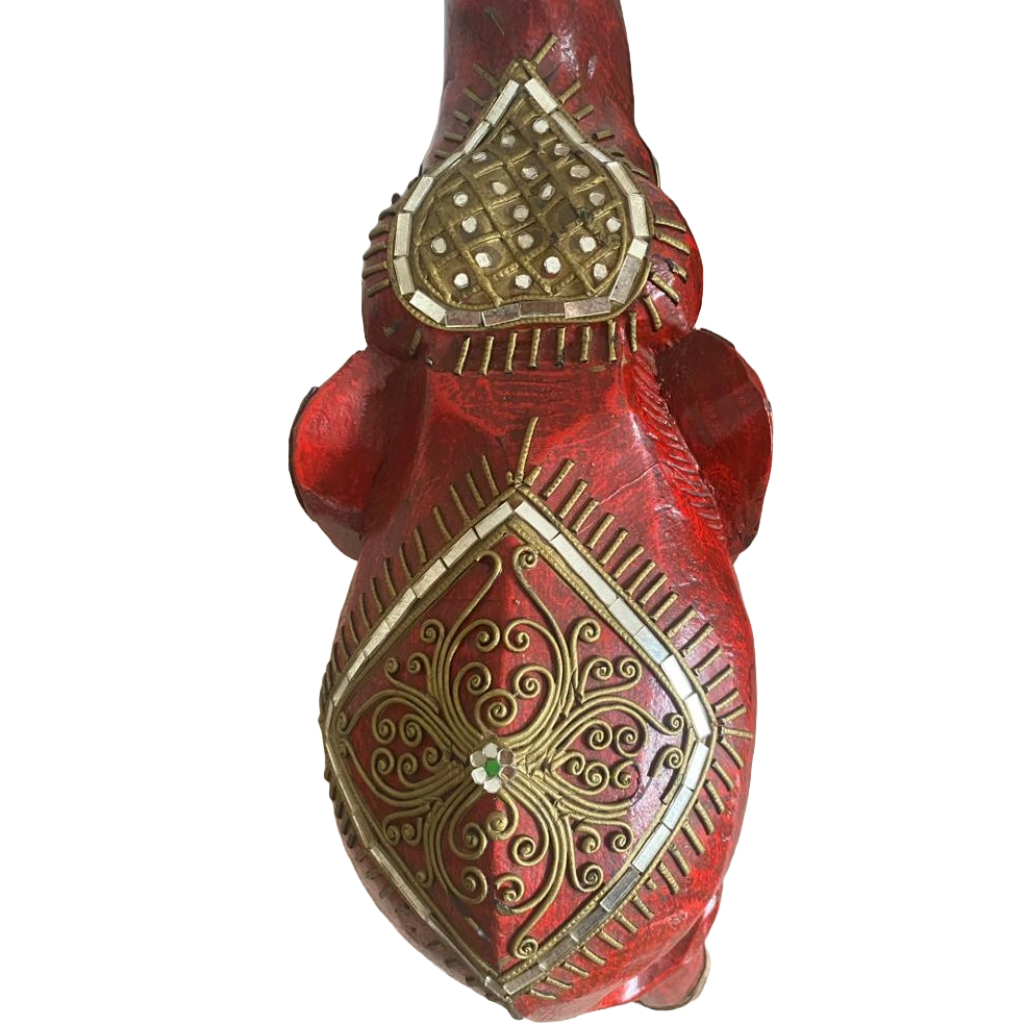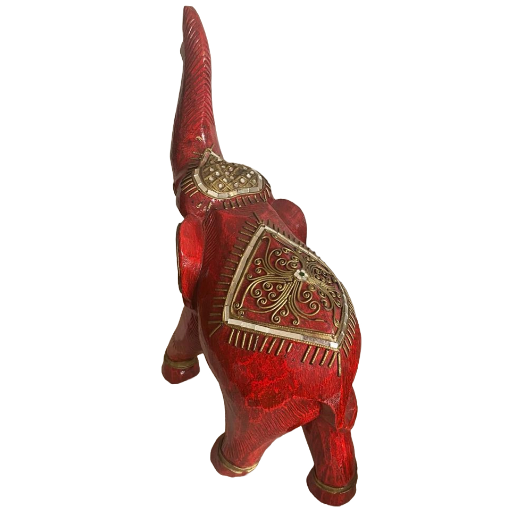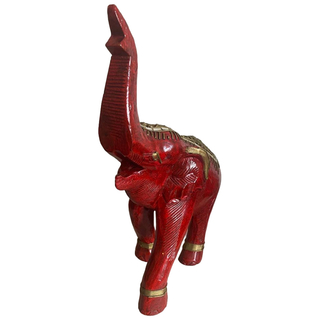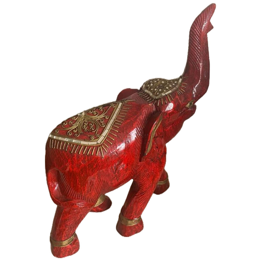 Esta obra de arte extraordinária representa a majestade e a grandiosidade do elefante, mas com um toque de singularidade que a torna verdadeiramente única: um elefante esculpido em madeira, com uma impressionante tonalidade vermelha que irradia sofisticação e personalidade.