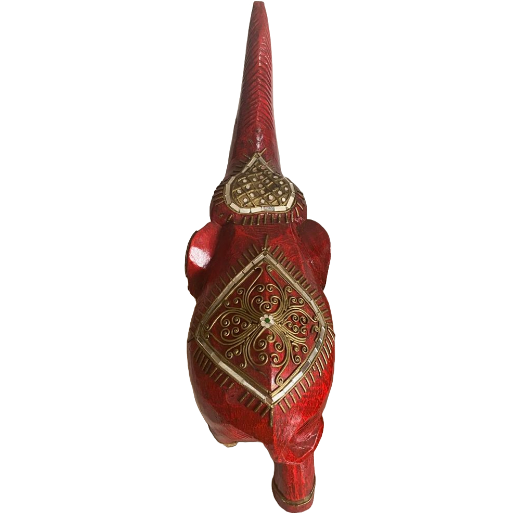 A Majestade do Elefante Vermelho em Madeira: Uma Obra de Arte Única