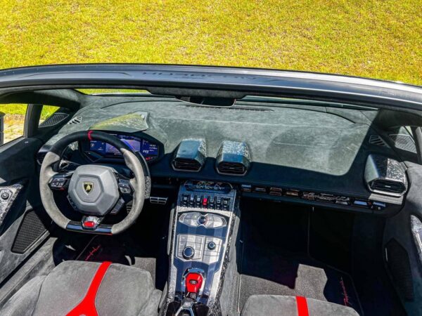Interior nero ancantara com costuras em vermelho e acabamento em black piano,