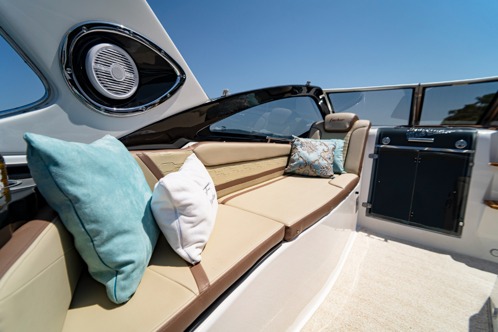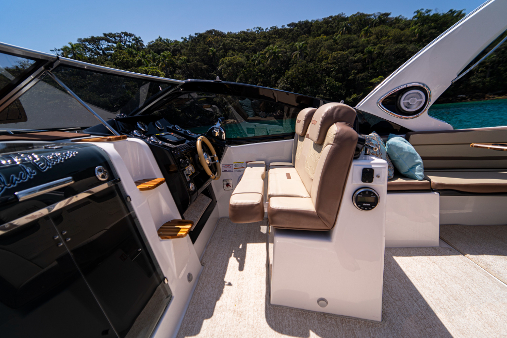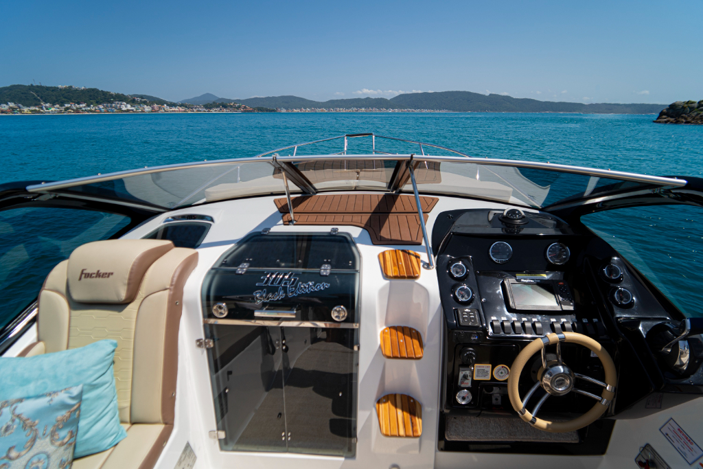 A Focker 305 é perfeita para dias ensolarados e noites memoráveis. Acomoda 10 pessoas durante o dia e 4 pessoas à noite. Possui cabine completa e aconchegante, cockpit bem distribuído, espaço gourmet, solário rebatível, tapeçaria italiana exclusiva e chaise anatômica.