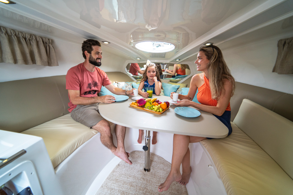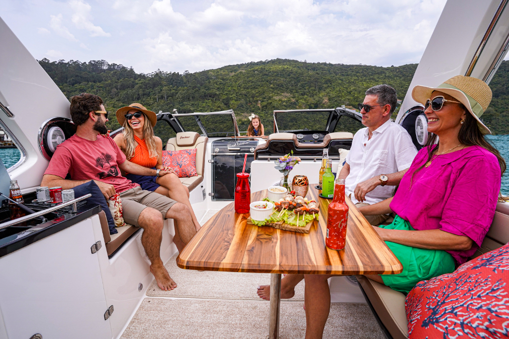 A VIDA É MUITO CURTA PARA VIVERMOS SEM APROVEITÁ-LA. A FOCKER 305 OFERECE TODO CONFORTO PARA DESFRUTAR DE MOMENTOS COM FAMÍLIA E AMIGOS. POSSUI PLATAFORMA DE POPA ESTENDIDA, COM POSSIBILIDADE DE CHURRASQUEIRA NA POPA E ACOMODA ATÉ 10 PESSOAS EM PASSEIOS DIURNOS E DOIS CASAIS EM PERNOITE. COM COCKPIT ESPAÇOSO, OFERECE MUITO CONFORTO AOS TRIPULANTES. JÁ A CABINE, COM PÉ DIREITO DE 1,80 METROS POSSUI ESPAÇO E MÓVEIS ADEQUADOS PARA ABRIGAR TODOS.