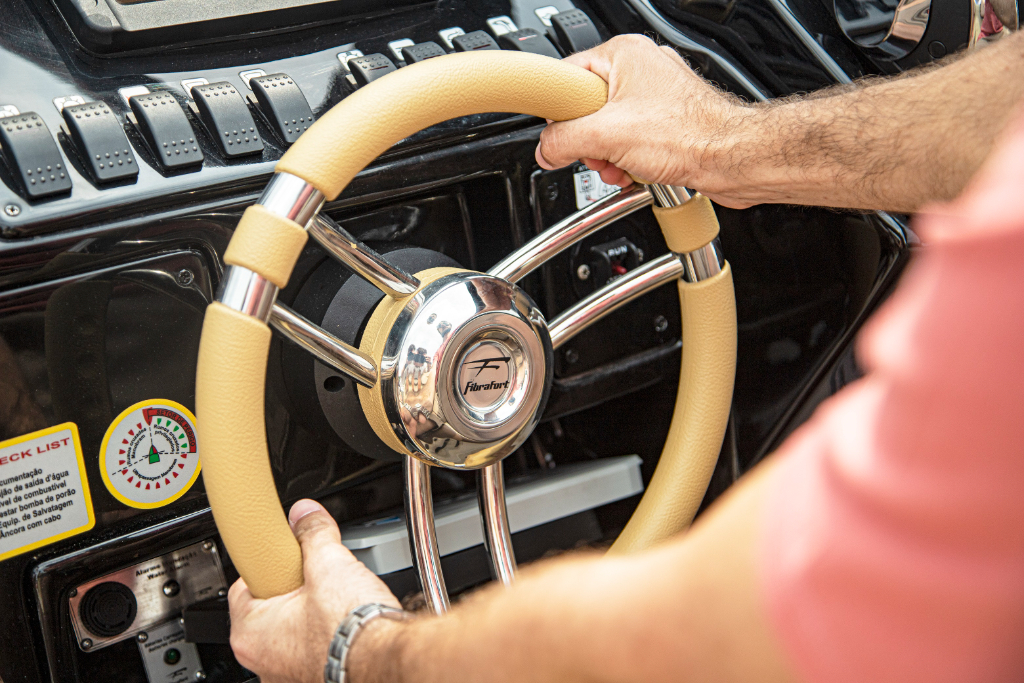 Material do casco: fibra de vidro