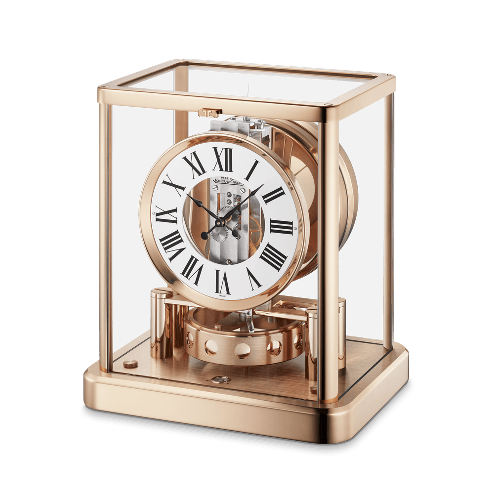 Objeto atemporal, o Atmos Classique com redoma banhada em ouro rosa e seu mostrador na cor ardósia ganha um visual mais moderno. Um relógio de mesa perfeito para revelar o tempo em seu interior.